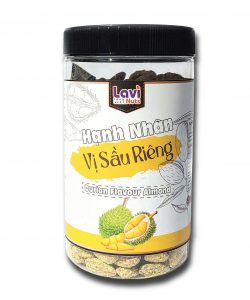 Hạnh nhân vị sầu riêng với thành phần kết hợp gồm có hạnh nhân và hương vị sầu riêng thơm ngon đậm đà được chiết xuất từ những trái sầu riêng thòa quyện vào những hạt hạnh nhân chất lượng cao tạo thành một dòng sản phẩm có màu vàng dịu bắt mắt, vị ngọt, thơm, bùi dễ ăn và cực kỳ kích thích vị giác