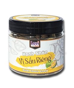 Hạnh nhân vị sầu riêng với thành phần kết hợp gồm có hạnh nhân và hương vị sầu riêng thơm ngon đậm đà được chiết xuất từ những trái sầu riêng thòa quyện vào những hạt hạnh nhân chất lượng cao tạo thành một dòng sản phẩm có màu vàng dịu bắt mắt, vị ngọt, thơm, bùi dễ ăn và cực kỳ kích thích vị giác