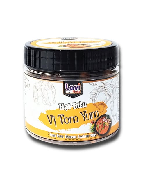Hạt điều tomyum là sự kết hợp hoàn hảo giữa hạt điều được tẩm ướp với các nguyên liệu chanh, sả, ớt, sốt tomyum… tạo nên một vị rất đặc trưng thơm mát của lá chanh, sả, chút ớt cay cay, vị mằn mặn đậm đà không quá gắt. Được làm từ những hạt điều chọn lọc, to tròn, giòn béo, cam kết không sử dụng hóa chất và chất bảo quản, với vị ngon tự nhiên chắc chắn sẽ là một sự lựa chọn tuyệt vời của bạn